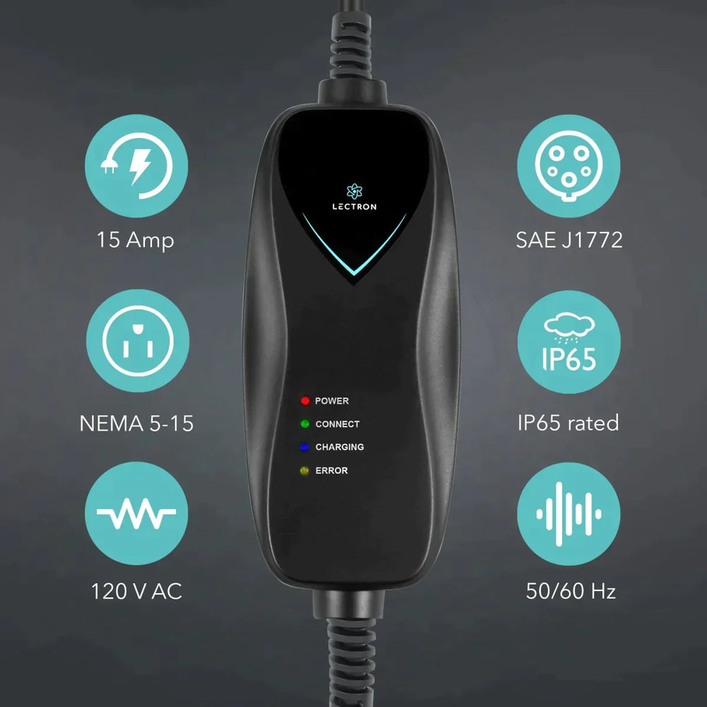 LEVEL 1 CHARGING: The Lectron Level 1 Charger lets you quickly charge your EV with a standard 110V outlet; You get 15 amps and 1.65 kW of power for the standard full-charge time for your car, at home or at work.