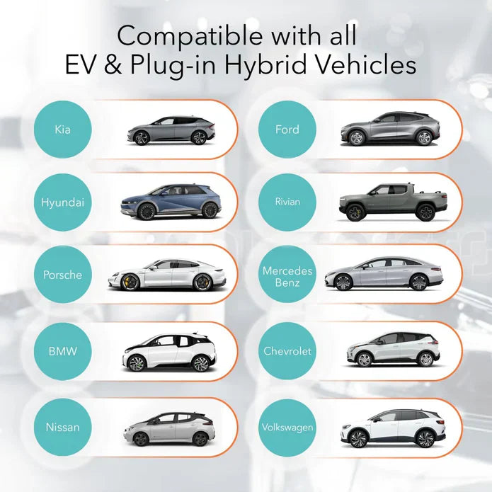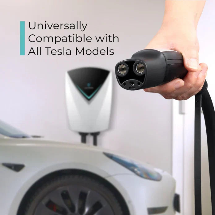 Powerful Level 2 charger designed for all J1772 EVs and Tesla models (S/3/X/Y & Cybertruck). This versatile charger features flexible charging options with multiple amp settings (16, 24, 32, 40, and 48A), ensuring compatibility and optimal performance for a wide range of electric vehicles.